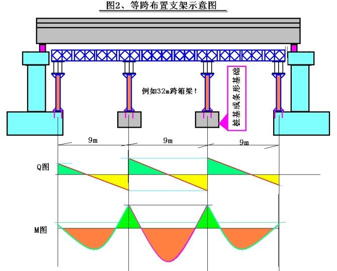 1、关于现浇梁的大跨支架支撑柱布置原则: