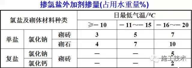 ,砂浆的后期强度会显著降低,同时导致砌体析盐量过大,增大吸湿性,降低保温性能。按气温情况规定的掺盐量见下表。