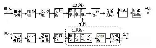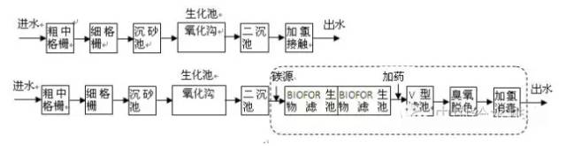 图8 浙江某污水处理厂提标改造前后工艺流程对比