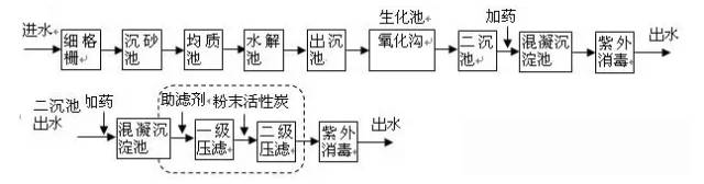 A2/O改良氧化沟+混凝沉淀+活性炭二级吸附、压滤