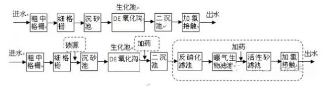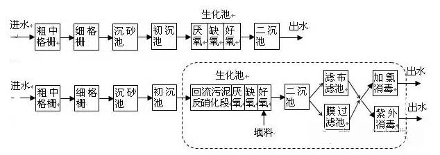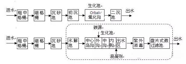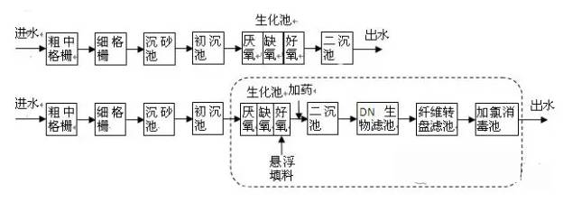,出水标准一级A。提标改造前后工艺流程详见图7。