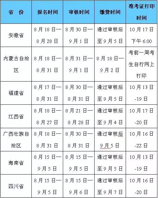 ,部分省份报名时间已经确定但是报名入口还没有开通,还有部分省份没有公布报名时间。已经开通报名入口的考生请抓紧时间报名。